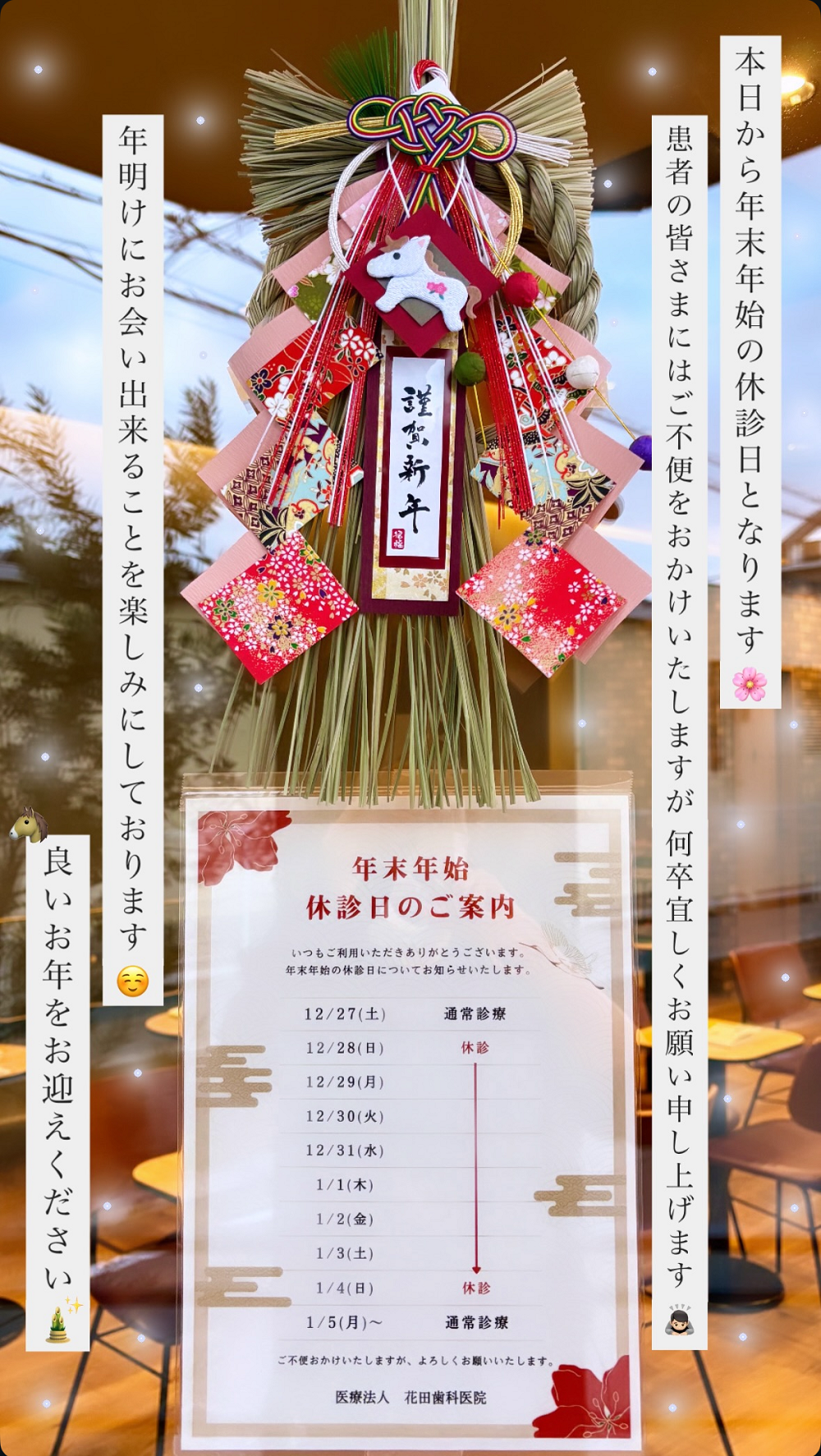 年末年始期間中の休診および診療日についてお知らせ致します。